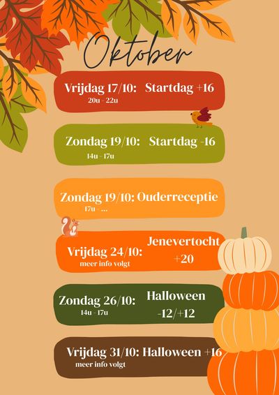 Hier vinden jullie de datums van onze activiteiten steeds terug dit met de bijhorende leeftijdsgroepen. Deze zal maandelijks een UPDATE krijgen.