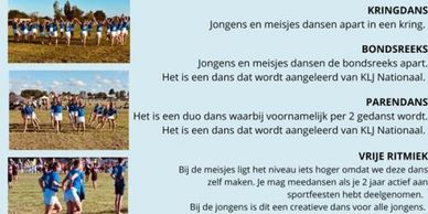 Er zijn verschillende soorten dansen waaraan we deelnemen. Buiten de vrije ritmiek zijn alle choreografieën opgelegd door KLJ Nationaal.